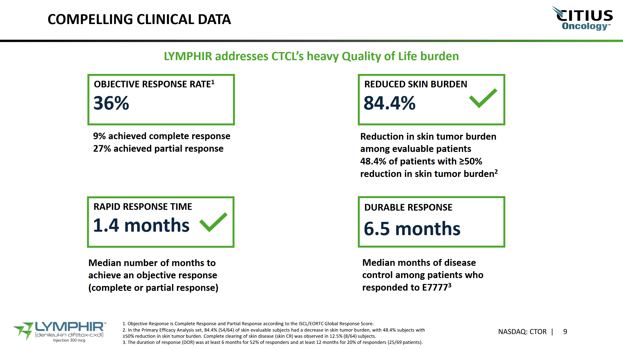 Reimbursement is supported by a permanent J-code (J9161), effective as of April 1, 2025. LYMPHIR is included in the NCCN Guidelines with a Category 2A recommendation. Patient and provider support programs are already active. Commercial-ready inventory with a 60-month shelf life is already in place to meet projected demand for 12–18